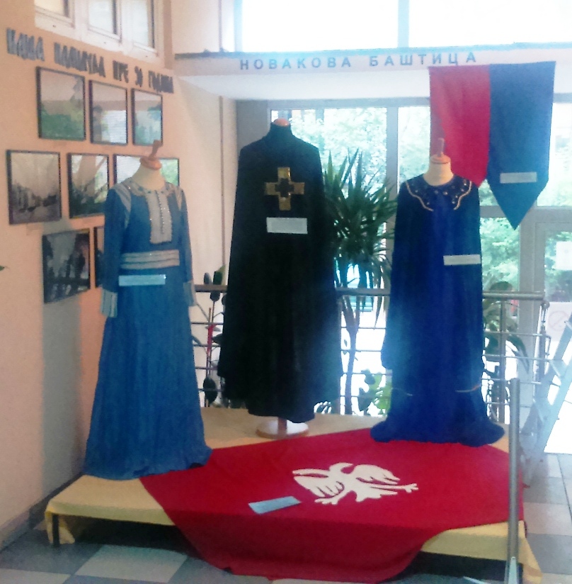 У склопу поменуте изложбе у холу школе постављена је издвојена поставка одежда средњовековне српске властеле у природној величини, као и верне реплике средњевековних српских застава из доба династије Немањића.