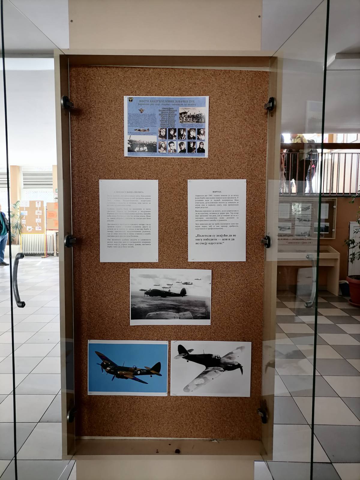 Изложба посвећена 85. годишњици Априлског бомбардовања Београда усмерена је на један кључни аспект овог догађаја – ваздухопловство и подухвате југословенских пилота у априлу 1941. године. Кроз пажљиво одабране фотографије, документе и пратеће текстове, изложба прати однос између разарања које је град претрпео и покушаја његове одбране из ваздуха.