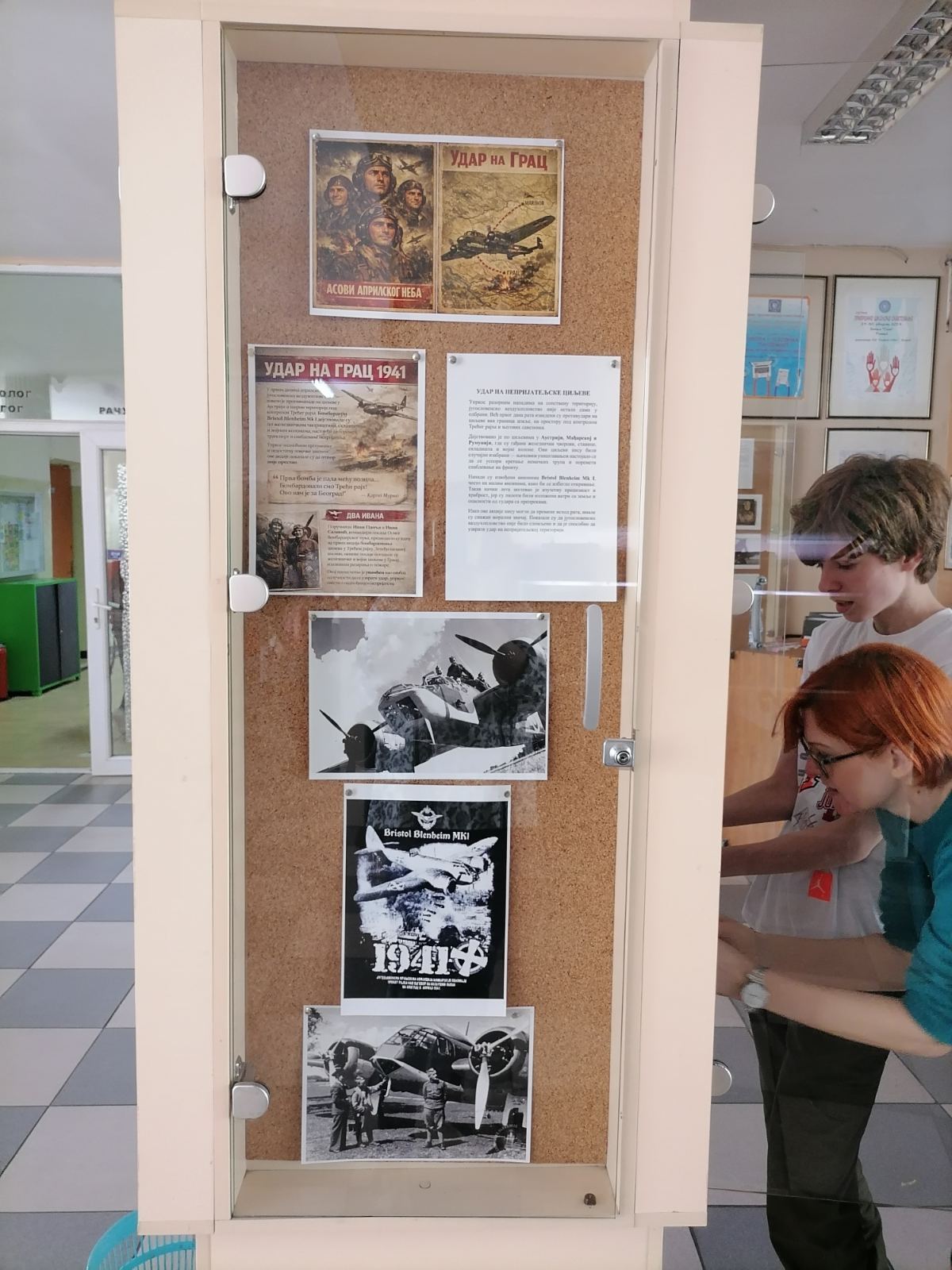 У припреми и постављању изложбе учествовали су ученици седмог и осмог разреда: Данило Стојановић, Миона Савић, Тијана Влајић, Милица Стевановић и Петар Максимовић, који је осмислио и дизајнирао плакат за изложбу. Посебно се истиче допринос ученика осмог разреда Константина Маричића и Павла Вулетића, који су израдили макете авиона. У реализацији изложбе учествовале су наставнице Татјана Бранковић и Марија Тодоровић.