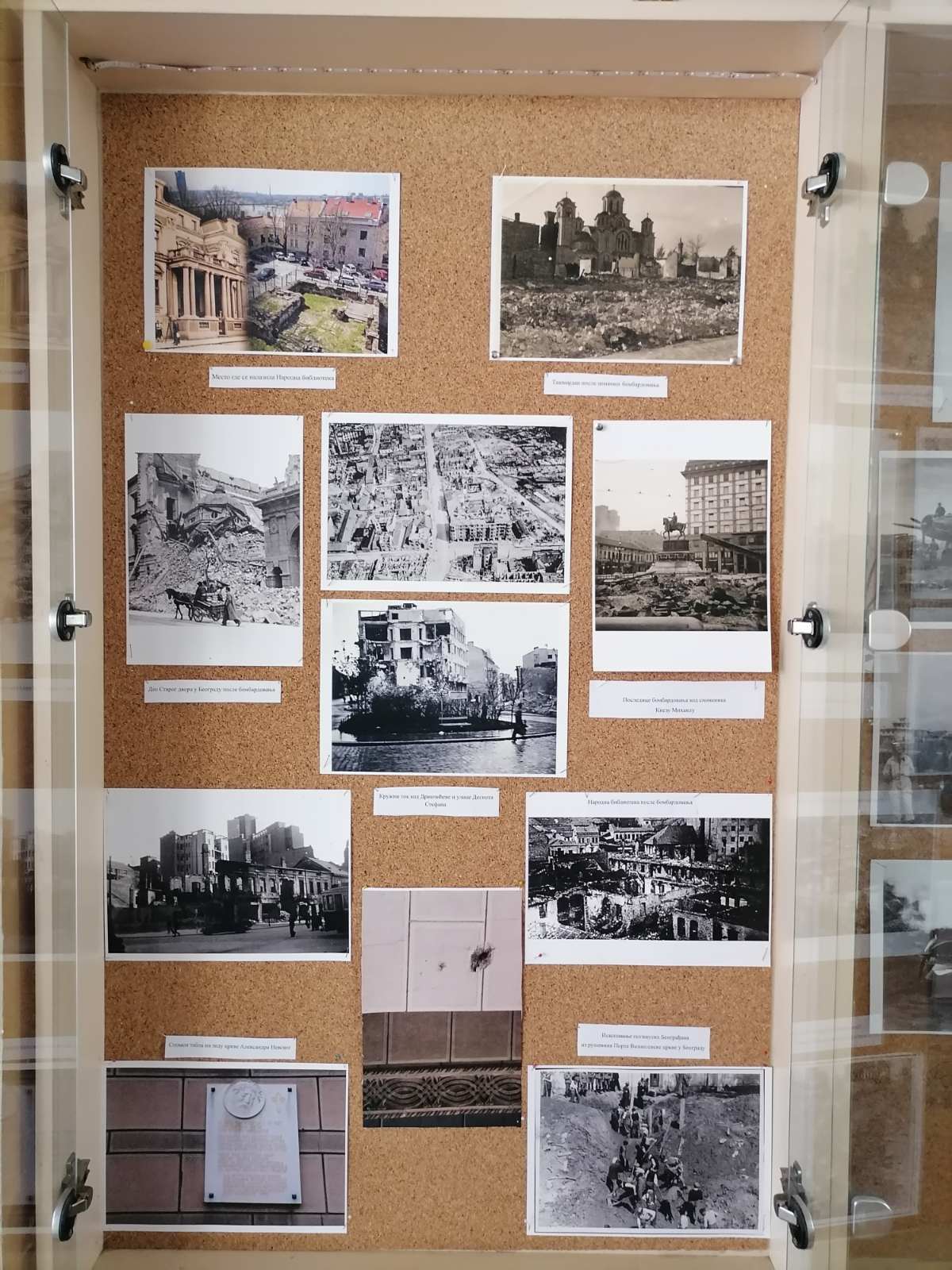 Фотографије разрушеног Београда додатно појачавају овај утисак, показујући последице бомбардовања и стављајући у јасан однос оно што је брањено и оно што је уништавано. На тај начин, поставка не приказује само догађај, већ и његово значење.